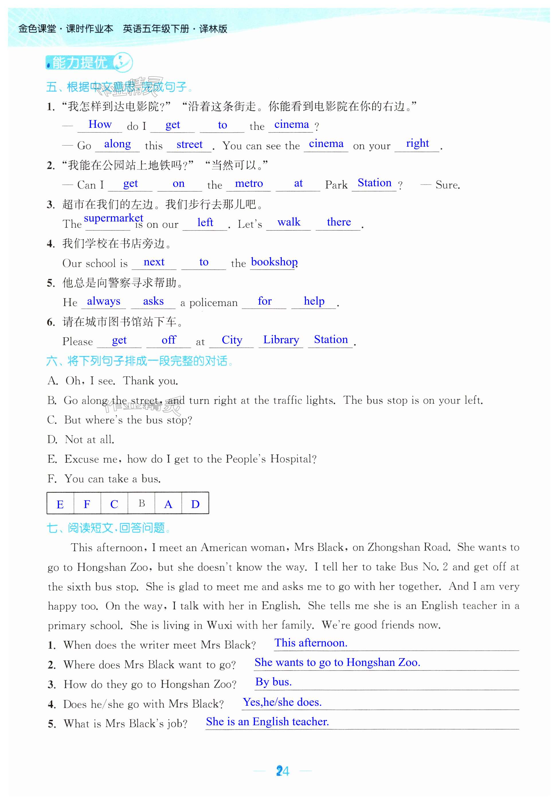 注:目前有些书本章节名称可能整理的还不是很完善,但都是按照顺序排列的,请同学们按照顺序仔细查找。练习册 2025年金色课堂课时作业本五年级英语下册江苏版 答案主要是用来给同学们做完题方便对答案用的,请勿直接抄袭。