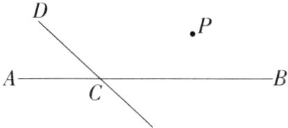 20. [答案含评分细则](8 分)读句画图:如图,直线$CD$与直线$AB$相交于点$C$,根据下列语句画图或者回答问题。