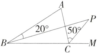 14. 教材变式 如图,BP 是∠ABC 的平分线,CP 是∠ACM 的平分线,如果∠ABP = 20°,∠ACP =
