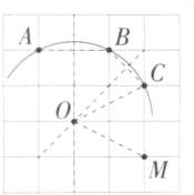 C 如图,分别作线段AB,BC的垂直平分线,其交点O即为圆心,连接OC,OM,设小正方形的边长为1,则半径OC=\sqrt{1^{2}+2^{2}}=\sqrt{5},OM=\sqrt{1^{2}+2^{2}}=\sqrt{5},