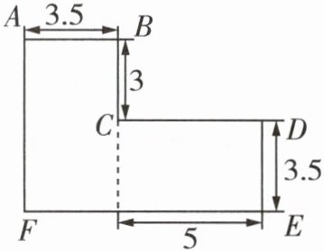 由矩形的性质可得 AF = 3 + 3.5 = 6.5,EF = 3.5 + 5 = 8.5,所以该图形各顶点的坐标分别为 A(0,6.5),B(3.5,6.5),C(3.5,3.5),D(8.5,3.5),E(8.5,0),F(0,0).