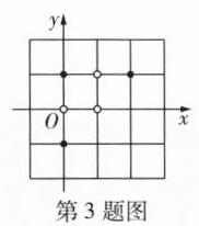 3 [2024保定十三中期中]明明和亮亮一起下围棋,明明持黑棋,亮亮持白棋. 如图,若棋盘正中间的白棋的位置用(1,0)表示,最右上角的黑棋的位置用(2,1)表示,明明把第七枚圆形棋子放在适当位置,使所有棋子组成轴对称图形,则第七枚圆形棋子放的位置不可能是( )