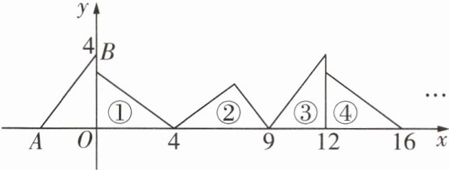 5 [2023邯郸凌云中学期中]如图,在平面直角坐标系中,已知点$A(-3,0)$,$B(0,4)$,对$\triangle OAB$连续进行旋转变换,依次得到三角形①,②,③,④,$\cdots$,则三角形⑯的直角顶点的坐标为 ( )