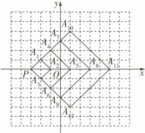 4 [2023烟台中考改编]如图,在平面直角坐标系中,每个网格小正方形的边长均为1个单位长度,以点$P$为公共顶点作正方形$PA_1A_2A_3$、正方形$PA_4A_5A_6\cdots\cdots$按此规律作下去,所作正方形的顶点均在格点上,其中正方形$PA_1A_2A_3$的顶点坐标分别为$P(-3,0)$,$A_1(-2,1)$,$A_2(-1,0)$,$A_3(-2,-1)$,则顶点$A_{100}$的坐标为 ( )