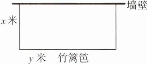 8 用长为12米的竹篱笆围成一个如图所示的长方形养鸡场(篱笆用完),养鸡场的一边靠墙,另三边用竹篱笆围成.设养鸡场与墙壁垂直的一边长为$x$米,与墙壁平行的一边长为$y$米.