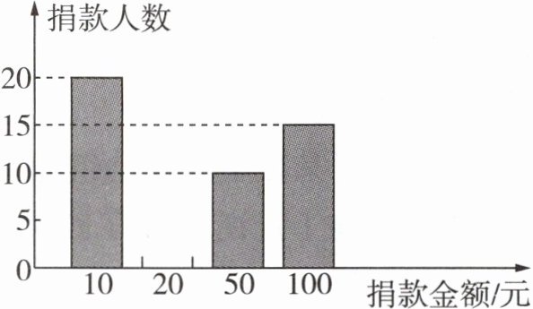 3 [2023长春东北师大附中期末]在某公益活动中,小明对本年级同学的捐款情况进行了统计,绘制成如图所示的不完整的统计图,其中捐100元的人数占年级总人数的25%,则本次捐款20元的人数为( )