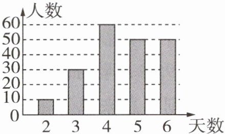 1 [2023石家庄栾城区期中]我市某校为了解八年级学生开展“综合与实践”活动的情况,抽样调查了部分八年级学生上学期参加“综合与实践”活动的天数,根据调查结果所得的数据绘制了如图所示的条形统计图,根据图中的信息可知,这次调查的八年级的总人数为( )
