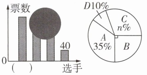 ∴$n\% = 1 - 10\% - 35\% - 25\% = 30\%$,选手B的票数为$400\times25\% = 100$(票),
