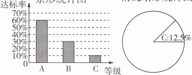 (2)该年级全体学生的体育达标率不符合要求。根据条形统计图,得