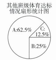 (2)若要求全年级学生的体育达标率(包括达标和达标以上)不低于90%,在本次调查中,该年级全体学生的体育达标率是否符合要求?如果不符合要求,至少还需要使几个不达标同学的成绩变为达标(或以上)?