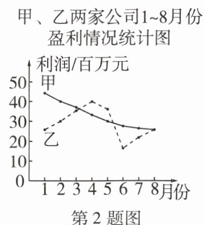 2 [2024邯郸丛台区期中]如图,是甲、乙两家公司在1~8月份盈利情况统计图,据图判断下列结论不正确的是(