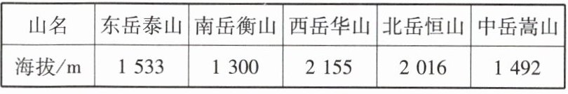 6 [2024长沙长郡教育集团期末]中华五岳,是中国的五座历史文化名山,它们的海拔如下表所示,为了能更清楚地体现五岳的海拔,下列的统计图中最合适的是( )