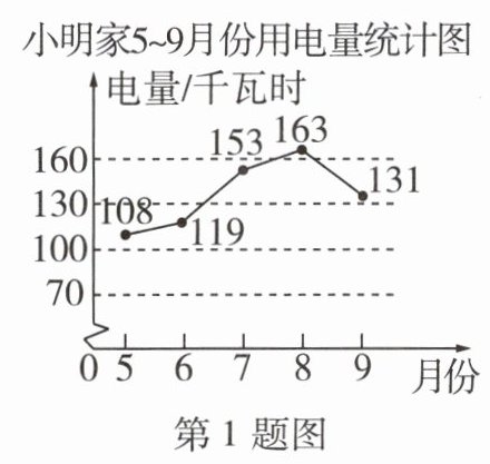 1 [教材P17T1变式][2024承德二中月考]小明家5~9月份的用电量情况如图所示,则相邻两个月中,用电量增长最快的是( )