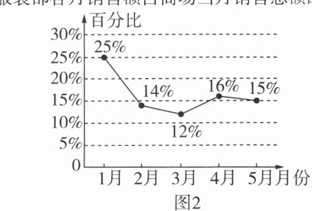 (2)商场服装部5月份的销售额为70×15%=10.5(万元).