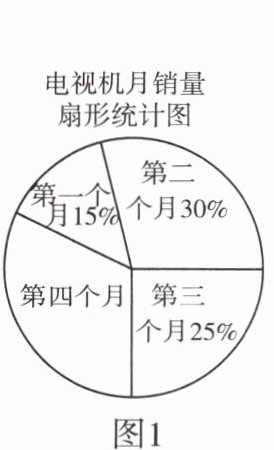 由扇形统计图可得第四个月的销量占总销量的百分比为1−(15%+30%+25%)=30%,