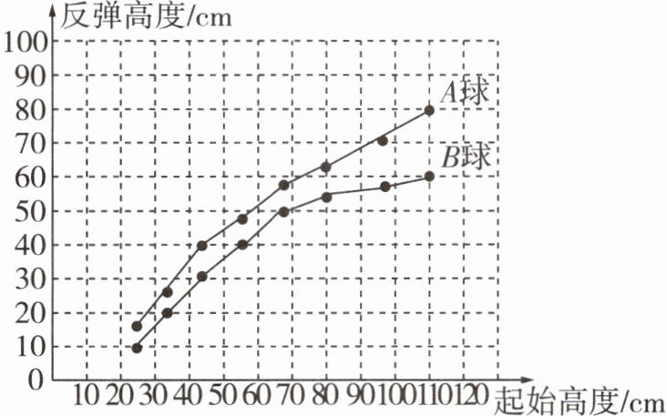 8 [2024邯郸邯山区期末]下面是A,B两球从不同高度自由下落到地面后反弹高度的折线统计图,根据图中信息,在实验数据范围内,以下说法错误的是( )