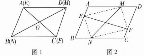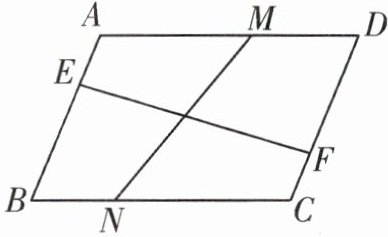 14 推理能力 如图,四边形ABCD为平行四边形,点M从点D运动到点A与点N从点B运动到点C的速度相同,点E从点A运动到点B与点F从点C运动到点D的速度相同,连接EF,MN.