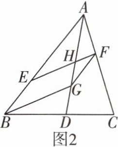 2 [2024哈尔滨顺迈学校月考]如图1,在△ABC中,AD平分∠BAC交BC于点D,点E,F分别在边AB,AC上,且BE = AF,点G在AD上,FG//AB,连接BG,EF,EF与AD相交于点H.