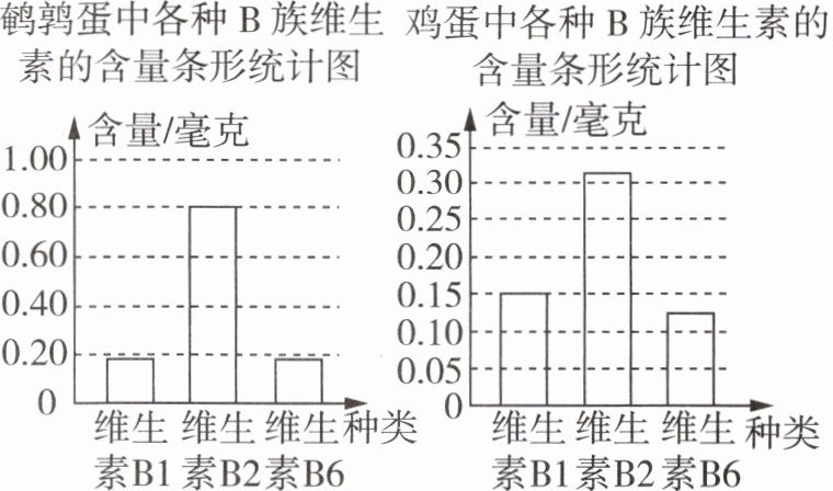 5 为了比较鸡蛋和鹌鹑蛋中各种B族维生素的含量,学生甲用如图所示的两幅条形统计图比较两种蛋中各种B族维生素的含量,你认为合适吗?为什么?