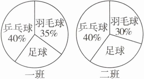 ∵二班参加羽毛球兴趣小组的人数占二班总人数的百分比为 30%,参加足球兴趣小组的人数占二班总人数的百分比为 30%,