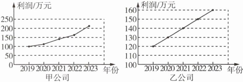 4 [2024 盐城中考]甲、乙两家公司2019~2023年的利润统计图如图所示,比较这两家公司的利润增长情况 ( )
