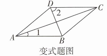 变式 一题多解 [2023湘潭中考]如图,菱形ABCD中,连接AC,BD,若∠1 = 20°,则∠2的度数为 ( )