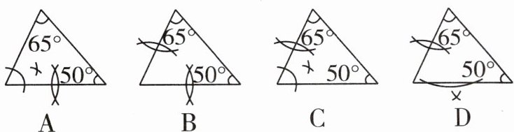 3 [2023 北京四月月考] 根据尺规作图的痕迹,可用直尺成功找到三角形内心的是 ( )