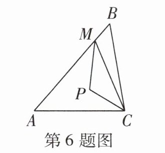 6 [一题多解 [2023 衡水二模] 如图,在△ABC 中,∠ACB = 80°,AC = BC,M 是 AB 上一点(不与点 A 重合),点 P 是△ACM 的内心,则∠MPC 的度数 ( )