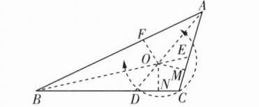 C@@如图,过点O作OF⊥AB于点F,OM⊥AC于点M,ON⊥BC于点N。由题意,得∠BAD = ∠CAD,∠ABE = ∠CBE,