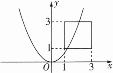 A@@当抛物线经过点$(1,3)$时,$3 = a\cdot1^{2}$,解得$a = 3$。当抛物线经过点$(3,1)$时,$1 = a\cdot3^{2}$,解得$a = \frac{1}{9}$。$\because$抛物线开口向上,$\therefore a$的值越大,开口越小,$\therefore$当抛物线与正方形有公共点时,$\frac{1}{9}\leq a\leq3$。