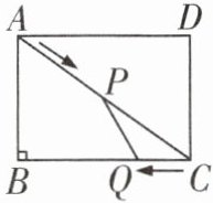 9 如图,在矩形ABCD中,AB = 6 m,BC = 8 m,动点P以2 m/s的速度从点A出发,沿AC向点C移动,同时动点Q以1 m/s的速度从点C出发,沿CB向点B移动,设P,Q两点移动t s(0 < t < 5)后,四边形ABQP的面积为S m².