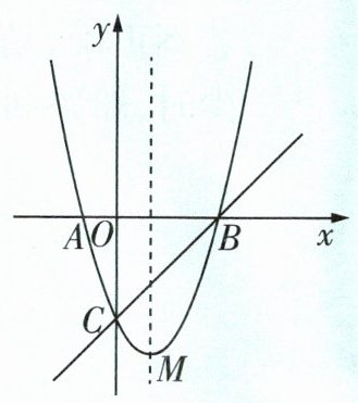 1 如图,二次函数$y = x^{2}+bx + c$的图像与$x$轴交于点$A,B(3,0)$,与$y$轴交于点$C(0, - 3)$,顶点为$M$.