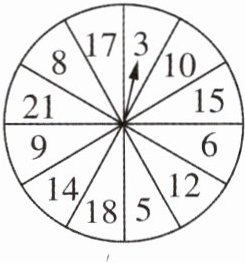 (3)种猜数方法,猜“是3的倍数”。理由如下:因为转盘中,奇数与偶数的个数相同,大于10与不大于10的数的个数也相同,是3的倍数的数有7个,不是3的倍数的数有5个,所以选择第