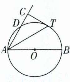证明:连接OT,如图,因为CT与⊙O相切,所以∠OTC = 90°,因为OA = OT,所以∠OAT = ∠OTA = 90° - ∠ATC,因为AC⊥CT,所以∠CAT = 90° - ∠ATC,所以∠OAT = ∠CAT,所以AT平分∠BAD。