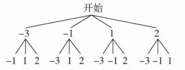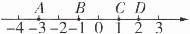 9 如图,数轴上的点A,B,C,D表示的数分别为-3,-1,1,2,从A,B,C,D四点中任意取两点,所取两点之间的距离为2的概率是 ( )