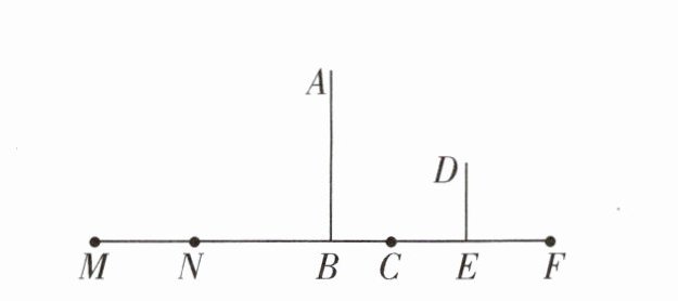 4 [教材P111T2变式]如图,晚上小红和小颖在广场的一盏路灯下玩耍,AB表示小红的身高,BC表示她的影子,DE表示小颖的身高,EF表示她的影子,请在图中画出灯泡的位置,并且画出形成影子MN的竖直小木棒.(用线段表示)