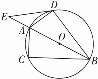 **证明**:如图,连接 $OD$,则 $OD = OB$,所以 $\angle ODB = \angle OBD$。因为 $AB$ 为 $\odot O$ 的直径,所以 $\angle ADB = \angle ACB = 90^{\circ}$,所以 $\angle ODB+\angle ADO = 90^{\circ}$。因为 $AB = AB$,$BD = BC$,所以 $Rt\triangle ADB\cong Rt\triangle ACB$,所以 $\angle ABC = \angle ABD = \angle ODB$。因为 $\angle ADE = \angle CBA$,所以 $\angle ADE = \angle ODB$,所以 $\angle ADE+\angle ADO = 90^{\circ}$,即 $\angle ODE = 90^{\circ}$,所以 $OD\perp DE$。又因为 $OD$ 是 $\odot O$ 的半径,所以 $ED$ 是 $\odot O$ 的切线。