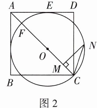 - **解法二**:连接 $FN$,如图2。因为 $CF$ 为 $\odot O$ 的直径,所以 $\angle CNF = 90^{\circ}$,所以 $\angle FNM+\angle CNM = 90^{\circ}$。因为 $MN\perp AC$,所以 $\angle NFM+\angle FNM = 90^{\circ}$,所以 $\angle NFM = \angle CNM$。又因为 $\angle NCM = \angle FCN$,所以 $\triangle CNM\sim\triangle CFN$,所以 $\frac{CN}{CF}=\frac{CM}{CN}$,所以 $CN^{2}=CM\cdot CF$。因为 $CM:FM = 1:4$,所以 $CF = 5CM$,所以 $CN=\sqrt{5}CM$。因为 $CF = 2R = 2\times\sqrt{2}=2\sqrt{2}$,所以 $CM=\frac{1}{5}CF=\frac{2\sqrt{2}}{5}$,所以 $CN=\sqrt{5}\times\frac{2\sqrt{2}}{5}=\frac{2\sqrt{10}}{5}$。