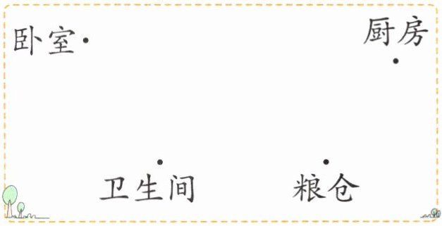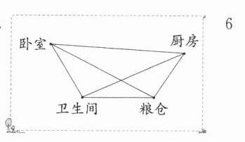 2. 小老鼠想在家里的粮仓、卧室、厨房和卫生间之间修通道。请你先画一画,再数一数最多能修( )条通道。
