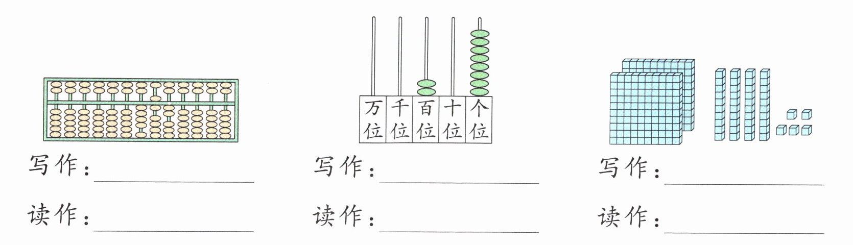 1. 看图写数、读数。