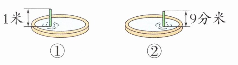 水池②中的水深一些。因为1米>9分米,所以水池①中的竹竿比水池②中的竹竿露出水面的部分长。又因为两根竹竿的长度相等,所以水池①中的竹竿比水池②中的竹竿插入水中的部分短,也就是水池②中的水深一些。