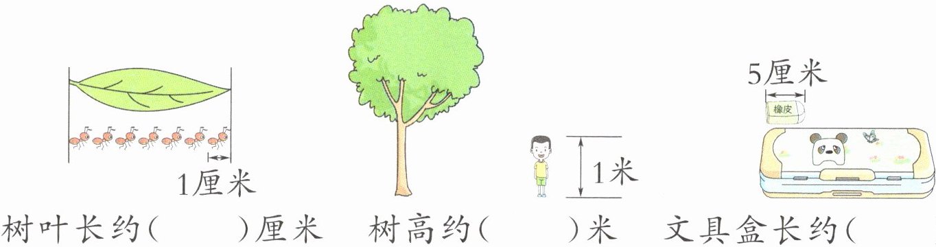 4.(量感)二(1)班小朋友的1庹约长1米,他们手拉手站成一排测量教室的长(如图),这面墙约长( )米,墙上这幅画约长( )厘米。