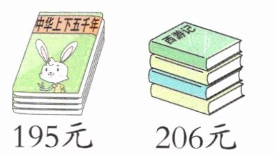 示例:买这两套书一共要花多少元@@195 + 206 = 401(元)@@示例:一套《西游记》比一套《中华上下五千年》贵多少钱@@206 - 195 = 11(元)