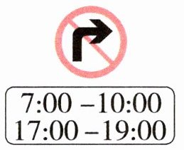 三 右图是禁止右转的交通标志,有两个时段不能右转行驶。