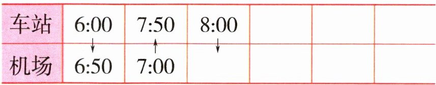 3. (衡水真题)一辆班车每次都按相同的行车时间往返于车站和机场之间。每天6:00第一次从车站发车,6:50到达机场,休息10分钟后从机场返回;8:00第二次从车站发车……