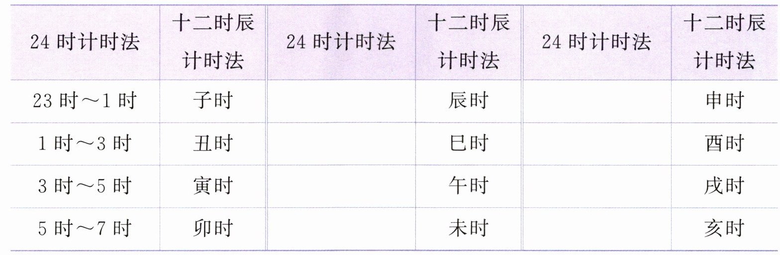 2. “刻”也是我国古代的计时单位。古人把每个时辰分为八刻,一刻相当于现在的15分钟。例如:子时一刻表示的时间是23:15。辰时五刻用24时计时法表示是什么时刻?