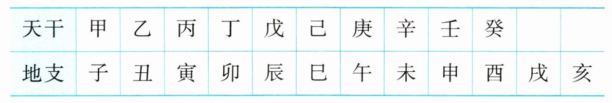 此外,古代还用“天干地支”进行纪年。“天干”包括甲、乙、丙、丁、戊、己、庚、辛、壬、癸。把“天干”中的一个字摆在前面,后面配上“地支”中的一个字,这样就构成一对干支。按照顺序,每年用一对干支表示,六十年一循环,叫做“六十花甲子”。例如1984年是甲子年,到2044年又是甲子年。