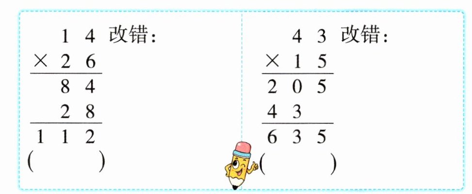 ②$\begin{array}{r}14\\×26\\\hline84\\28\\\hline364\end{array}$@@①$\begin{array}{r}43\\×15\\\hline215\\43\\\hline645\end{array}$
