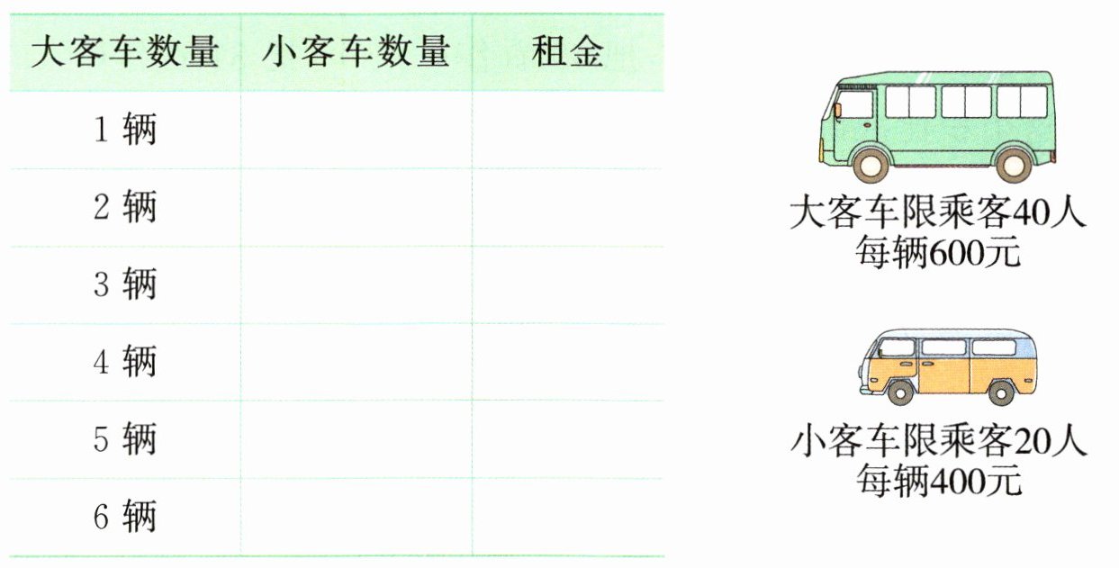 最省钱的方案:租大客车( )辆,小客车( )辆。
