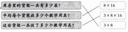 实验小学的库房里有3个货架,每个货架有8层,每层放了16个教学用具。